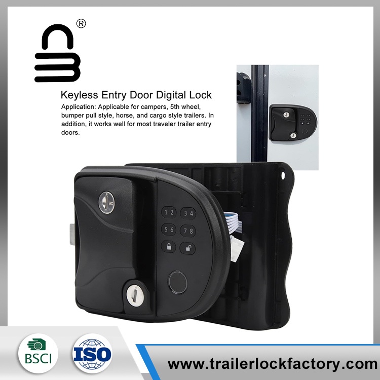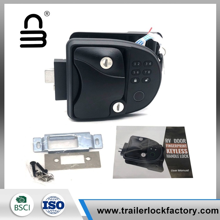 Le verrou de porte RV d'empreintes digitales a un clavier intégré de mot de passe) Le clavier intégré est conçu pour choisir parmi plus d'un million de codes de défilement (comprend la poignée sans clé, le verrouillage des empreintes digitales et la clé mécanique) ne vous inquiétez jamais de l'oubli ou de la perte de clés) et de la télécommande