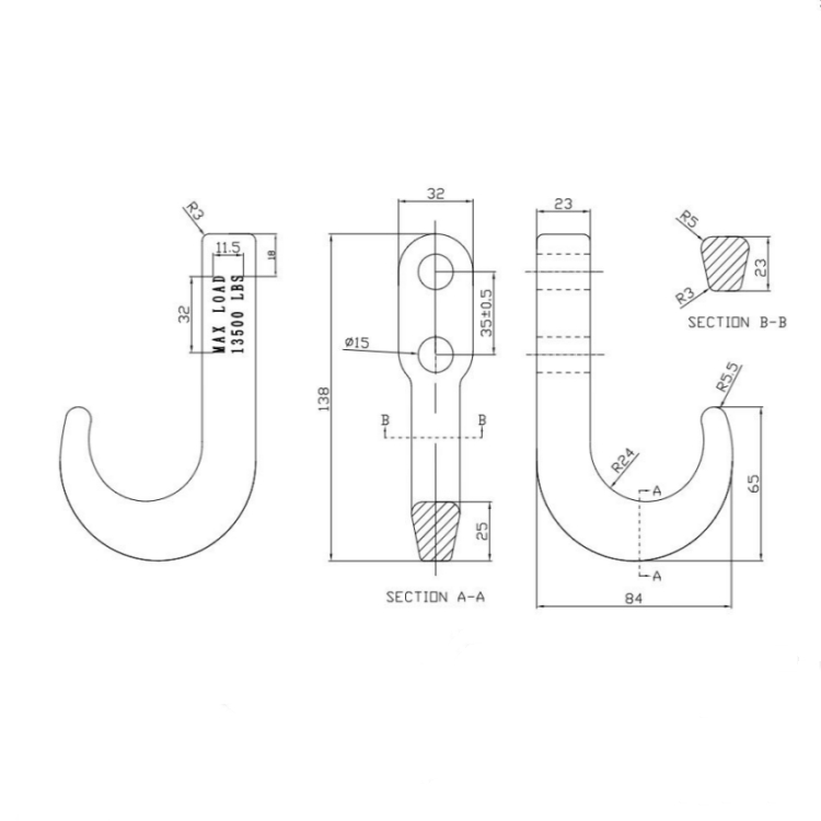 Ce remorquage de crochets est construit en acier forgé à haute résistance, traité à la chaleur pour une résistance maximale. Il est évalué à 10 000 livres. (limité à la structure de montage)