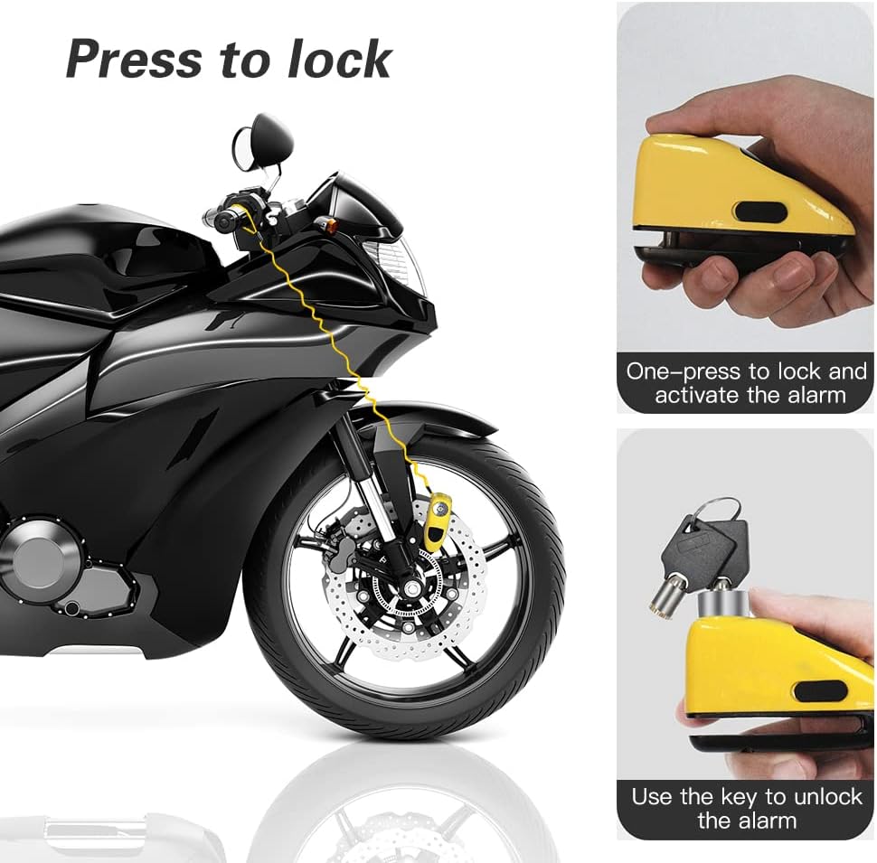 · Alarme à haute responsabilité: alarme de moto Le capteur de verrouillage du disque de frein, alarme détecte l'impact et le mouvement, assurant la sécurité de votre moto. La classe d'alarme 110DB peut émettre un son d'alarme fort.